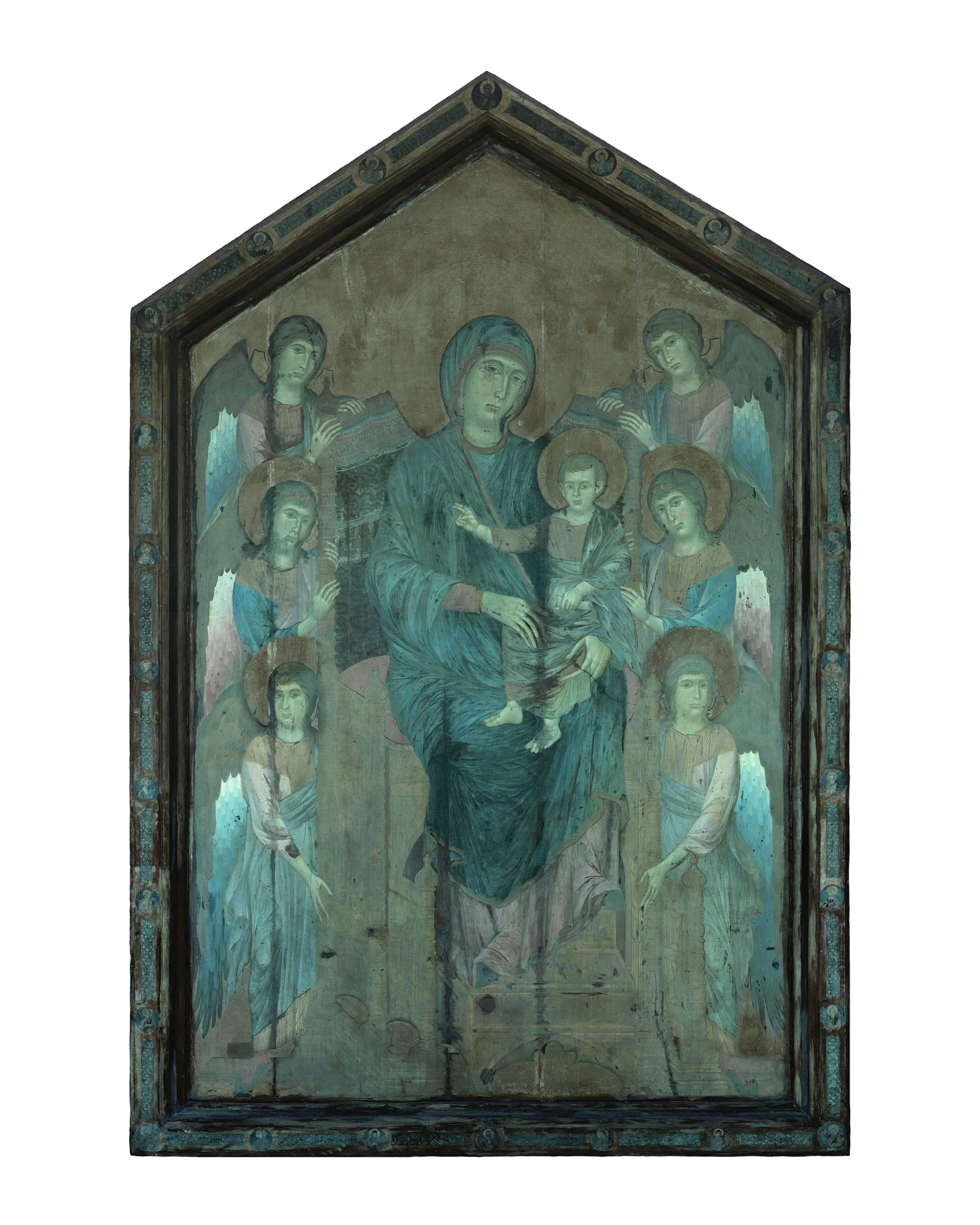 La Vierge et l'Enfant entourés de six anges, Giovanni Gualtieri Cimabue, oeuvre après restauration © C2RMF Thomas Clot