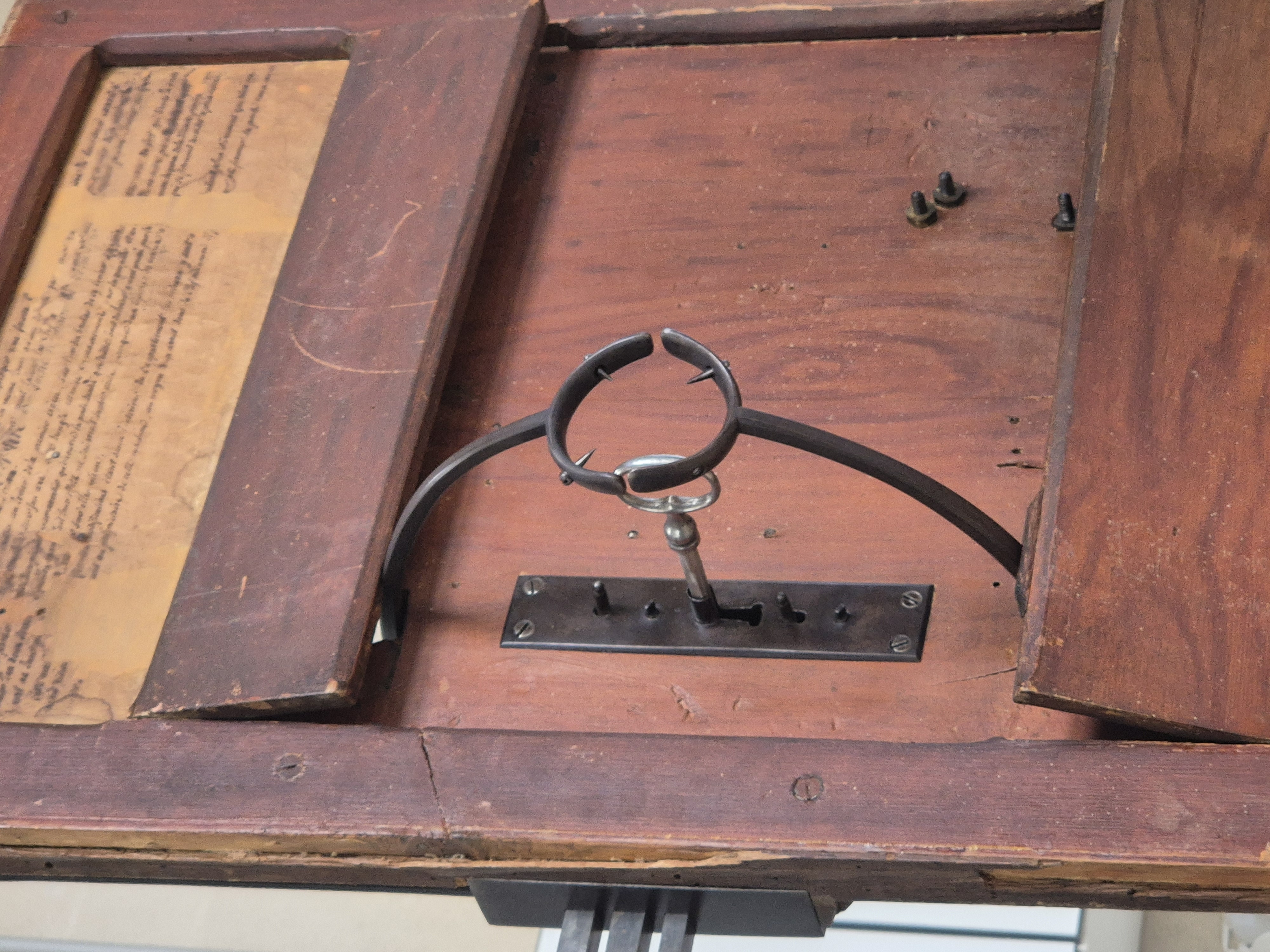 L’étude et la restauration d’une serrure à délateur et à secrets de la fin du XVIIIe siècle, a permis de présenter cette dernière dans l’exposition temporaire Flops ?! Oser, rater, innover qui se tient au musée des Arts et Métiers jusqu’au 17 mai 2026. La serrure a été redécouverte à l’occasion de recherches menées par Fabien Colliot, président de l’association des crocheteurs de France, dans les réserves du musée. La responsable de la collection Mécanique, Karine Alexandrian, a donc décidé de confier l’objet au C2RMF pour en retrouver son fonctionnement et assurer sa conservation-restauration.